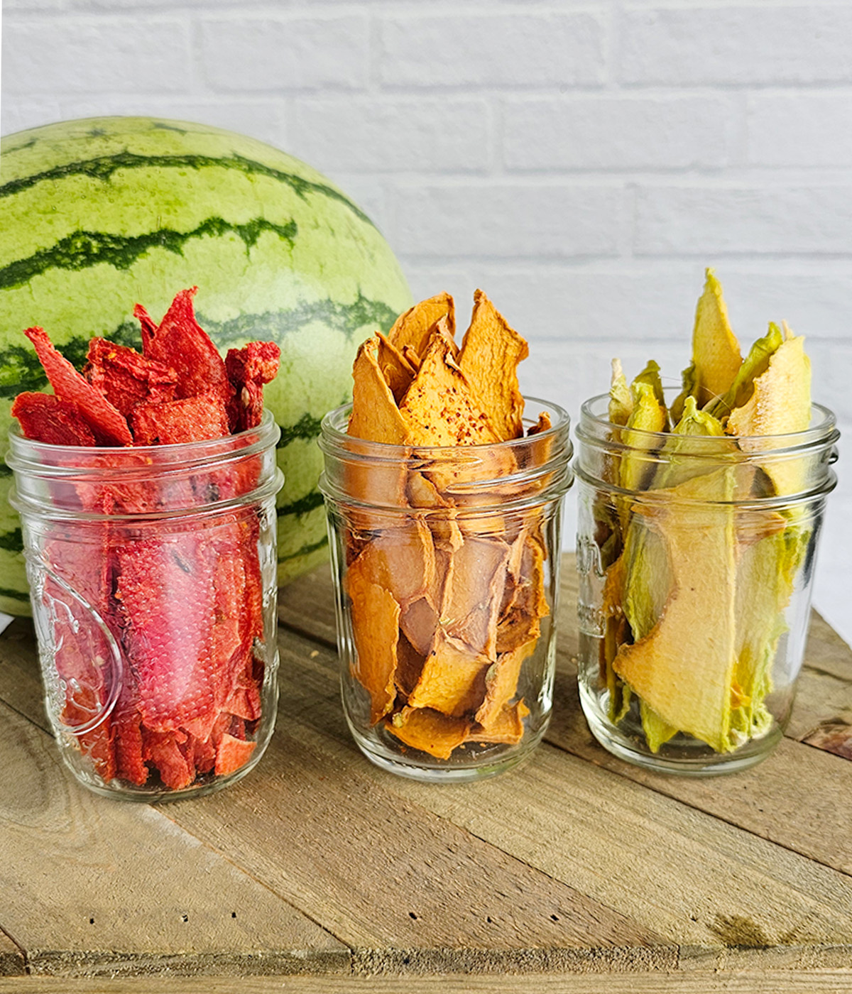 • Watermelon: Due to its extreme water content, watermelon can take anywhere from 10 to 14 hours. The result is often referred to as "watermelon jerky" or "watermelon taffy."