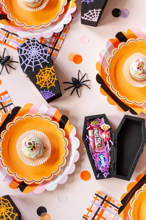 Furthermore, the integration of place cards—a staple of formal Victorian dining—into a "spooky" or "macabre" theme demonstrates the modern consumer’s penchant for "high-low" aesthetics. This blending of formal social etiquette with playful, seasonal themes is a hallmark of the millennial and Gen Z approach to hosting. The use of alphabet stickers to denote names inside the coffin lids reflects a broader trend toward "stealth personalization," where the custom element is a surprise discovered by the guest, thereby enhancing the user experience.