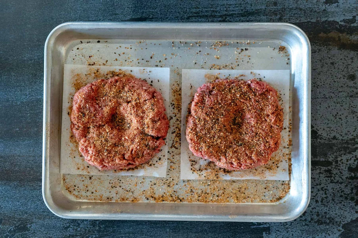 Pro Tip from the Grill: To maintain the ideal cold temperature of the beef, which is essential for fat retention and juiciness, work quickly. If the meat begins to feel warm from your hands, it’s a sign that the fat is starting to melt. In such cases, it’s advisable to cover the patties and refrigerate them for 15 to 30 minutes before grilling to firm them up again. This brief chilling period ensures the fat remains solid until it hits the grill, contributing to a more succulent final product.